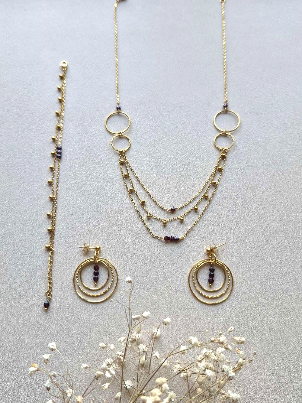 Les boucles d’oreilles grenat symbolisent cette énergie du feu intérieur. Une énergie vibrante qui invite au courage, à la créativité et au passage à l’action.