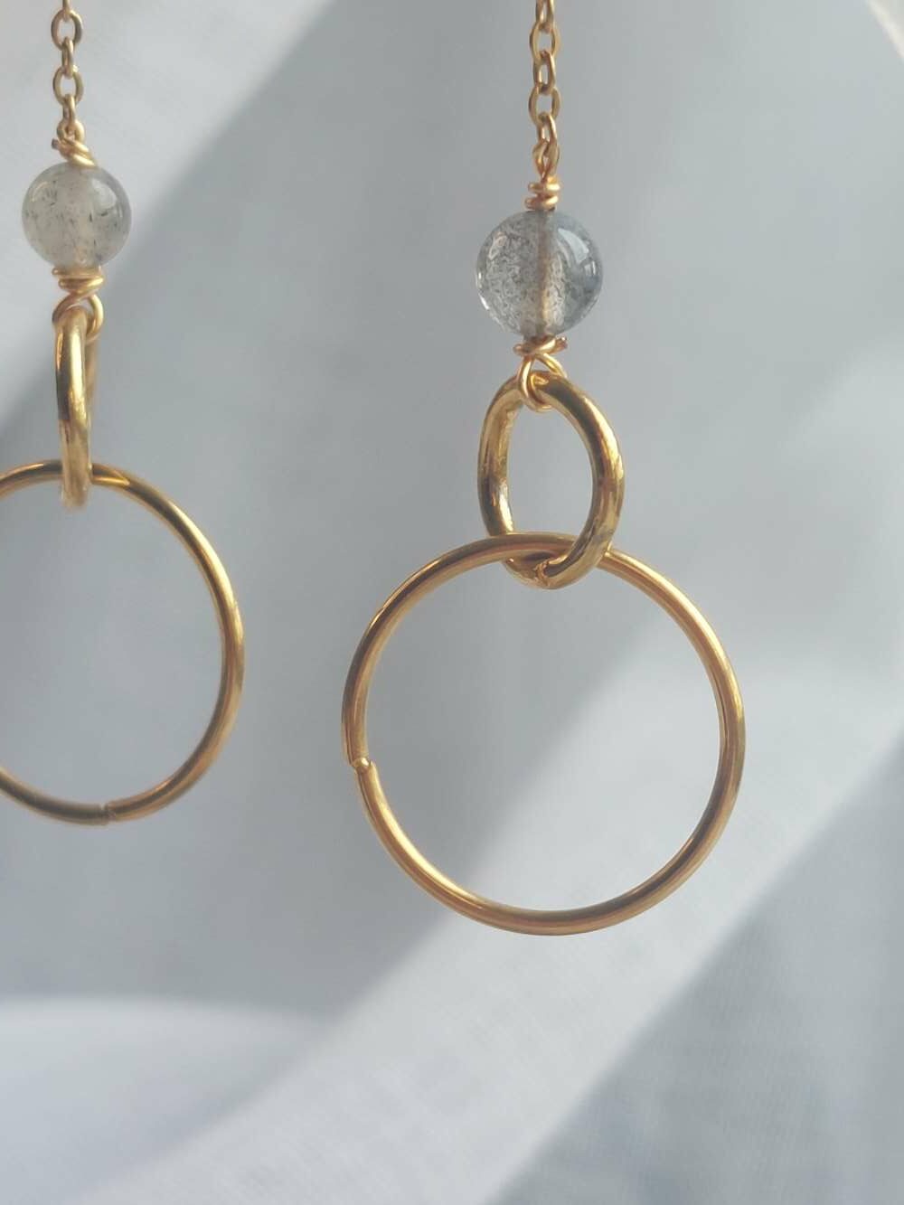La labradorite est une pierre mystique et protectrice. Elle agit comme un bouclier énergétique, bloque les énergies négatives et favorise l’équilibre émotionnel. En même temps, elle stimule l’intuition et développe la clairvoyance. Porter ces boucles d’oreilles, c’est choisir de rester protégée tout en étant ouverte aux messages subtils de votre âme.