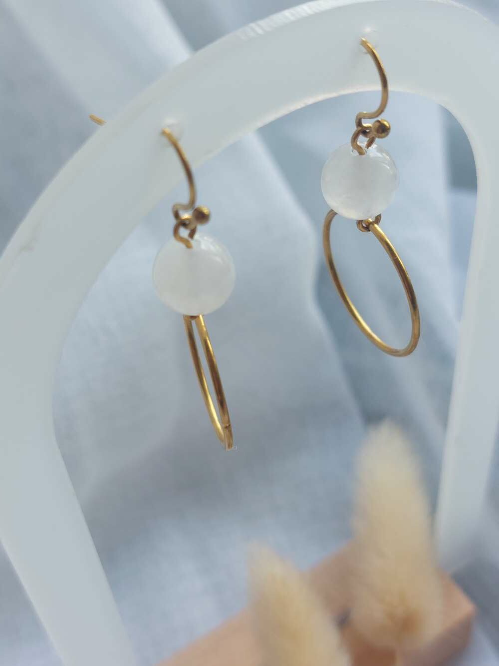 Boucles d’oreilles Pierre de lune blanche – Energie lunaire
