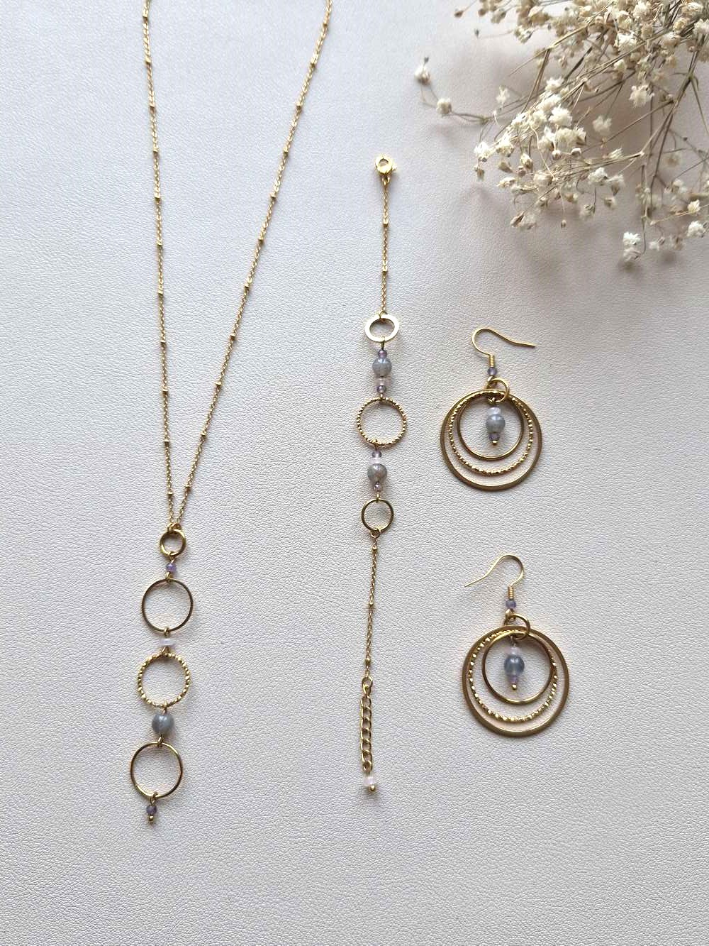 Pour une harmonie complète, découvrez également le collier et les boucles d’oreilles assortis. Ensemble, ils forment une parure vibratoire inspirée par la puissance du féminin et l’énergie des pierres naturelles.