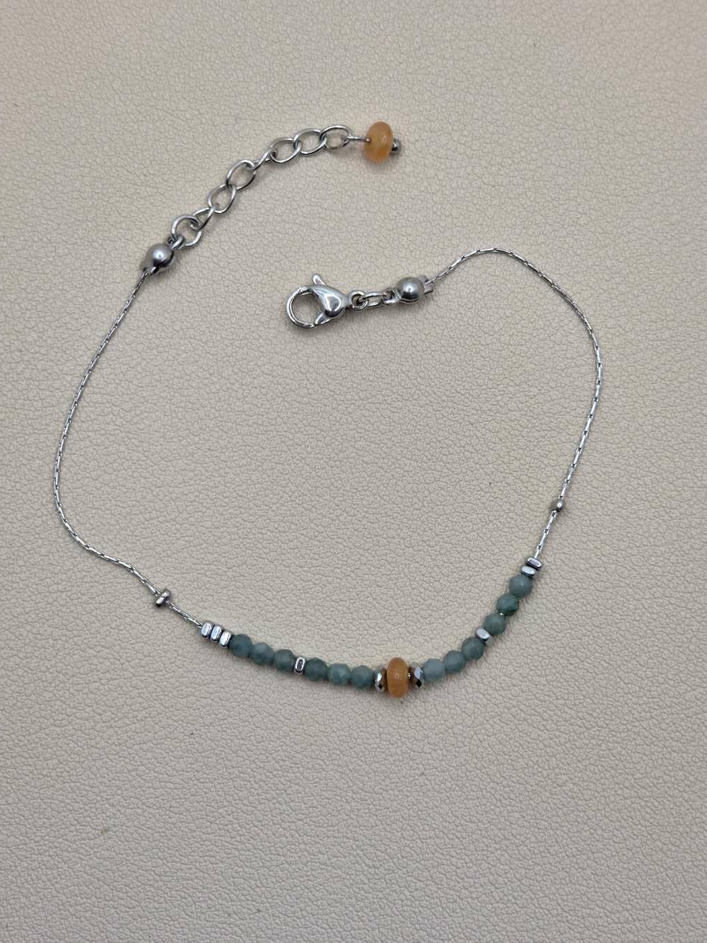 Composé de pierres naturelles, ce bijou diffuse une énergie subtile et équilibrante. Le jade soutient la croissance personnelle, encourage l’harmonie et apaise les émotions. Puis, l’aventurine orange insuffle une dynamique de renouveau, attire la chance et favorise les opportunités. Ainsi, ce bracelet en jade et aventurine (argenté) devient un allié précieux dans les périodes de transformation.