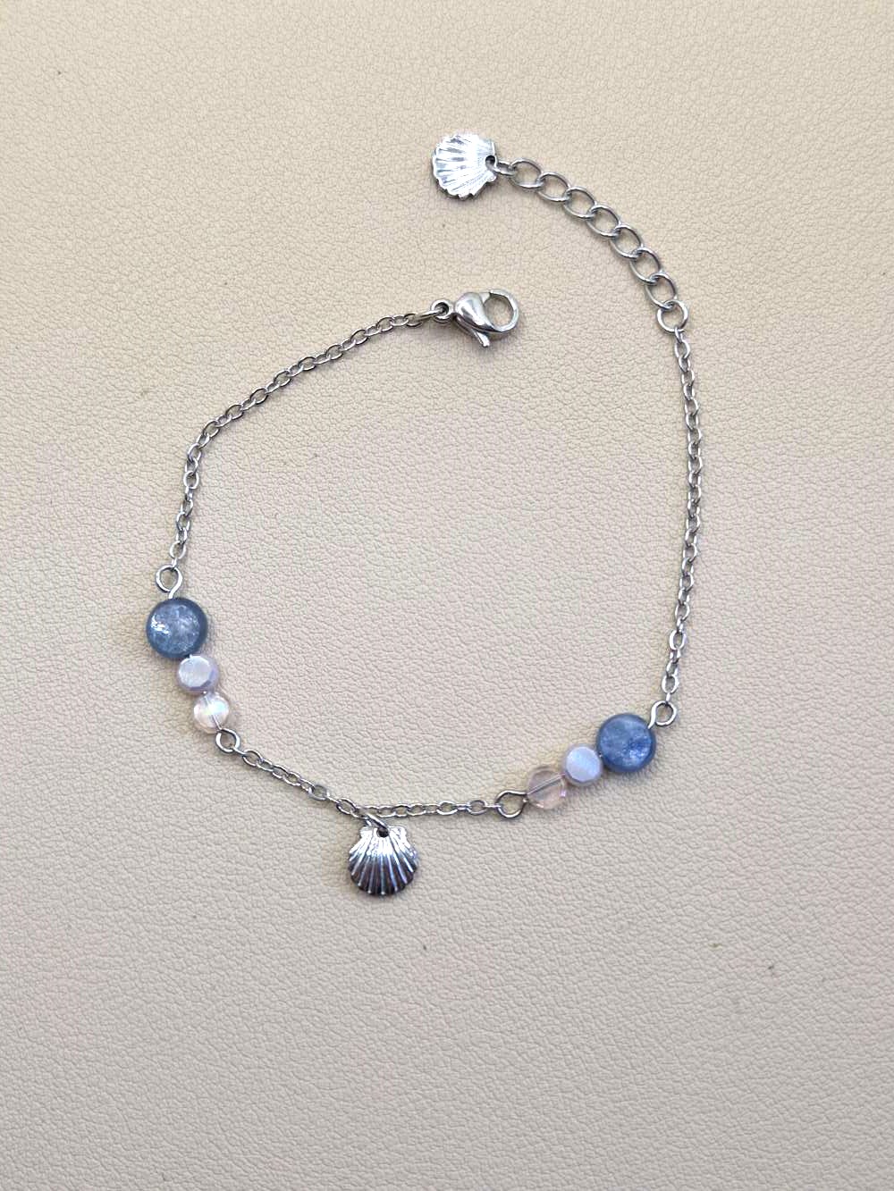 Au centre de ce bracelet se trouve la pierre de kyanite. Cette pierre naturelle est reconnue pour soutenir l’intuition et encourager l’écoute de soi. Elle aide à clarifier les émotions et accompagne les personnes sensibles qui souhaitent mieux comprendre leur monde intérieur.