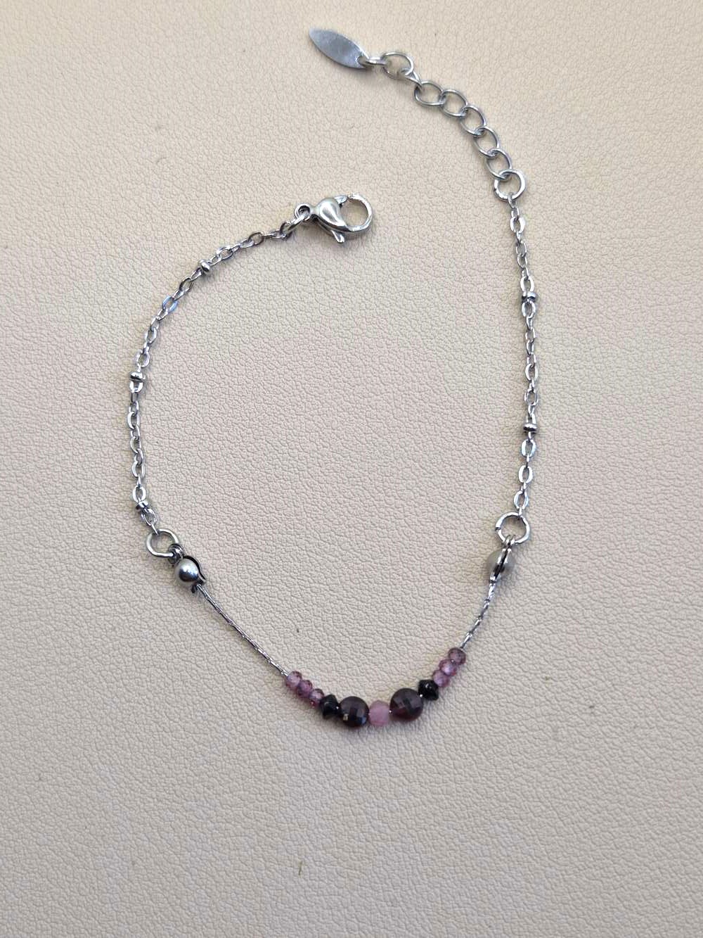 Créé en acier inoxydable argenté, ce joli bijou associe des pierres naturelles aux vertus complémentaires. La tourmaline noire protège et favorise l’ancrage. Ensuite, la tourmaline rose apporte douceur et équilibre. Le grenat renforce la vitalité et la force intérieure. Ainsi, ce bracelet fin soutient votre évolution personnelle avec justesse et force.