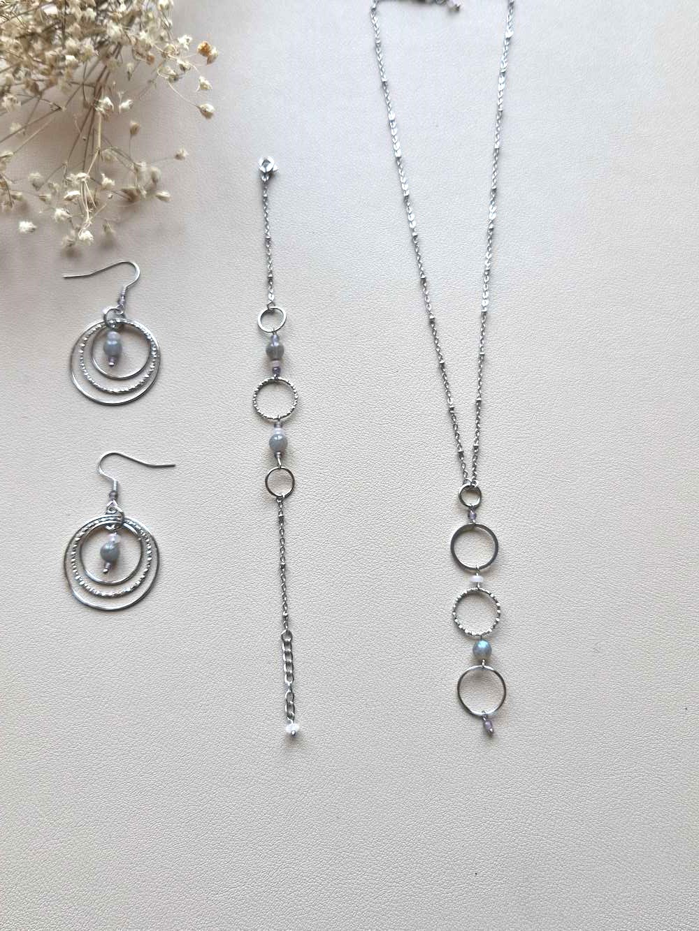 Pour une harmonie parfaite, découvrez également le bracelet et les boucles d’oreilles assortis. Ensemble, ils créent une parure vibratoire inspirée par la puissance du féminin et l’énergie des pierres naturelles.