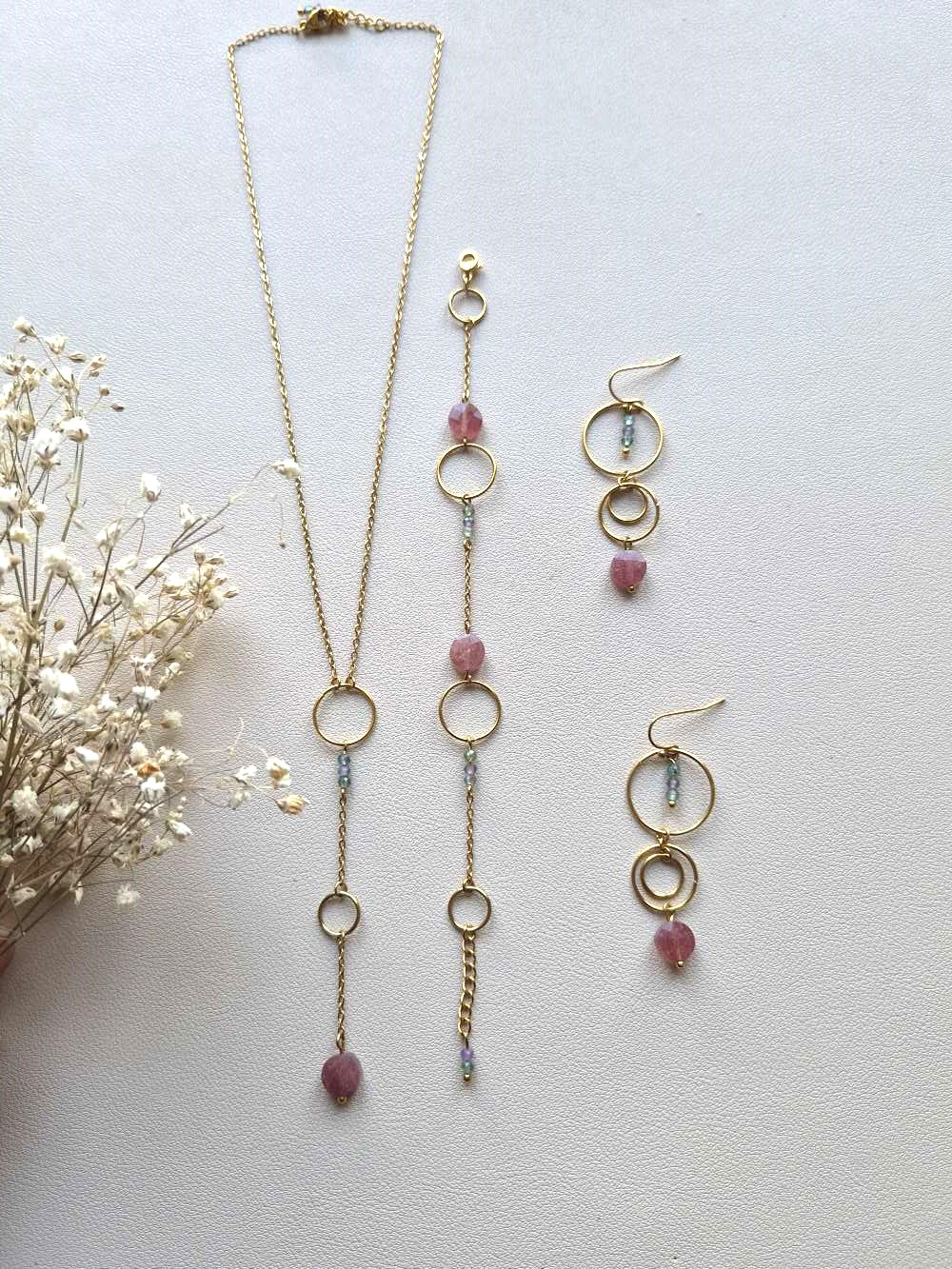 Enfin, pour prolonger cette harmonie, découvrez également le bracelet et les boucles d’oreilles assortis pour créer un ensemble complet, doux et profondément aligné.