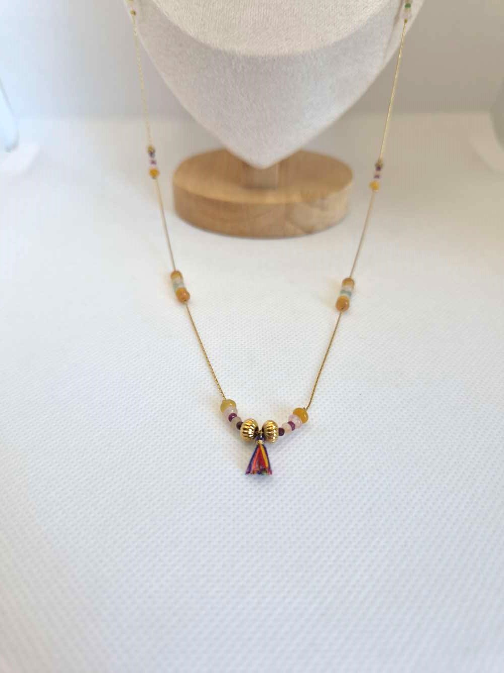 Dans la collection Héritage Féminin, ce sautoir coloré rend hommage à la sorcière fleur.